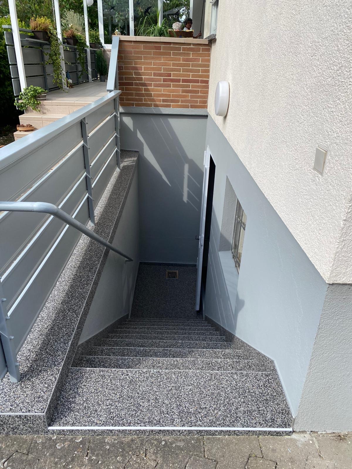 Ja, eine bestehende Treppe kann ohne Abriss mit einem Steinteppich saniert werden. Nach einer gründlichen Vorbereitung der Oberfläche wird der Steinteppich fugenlos aufgetragen und sorgt für eine langlebige, moderne Optik.